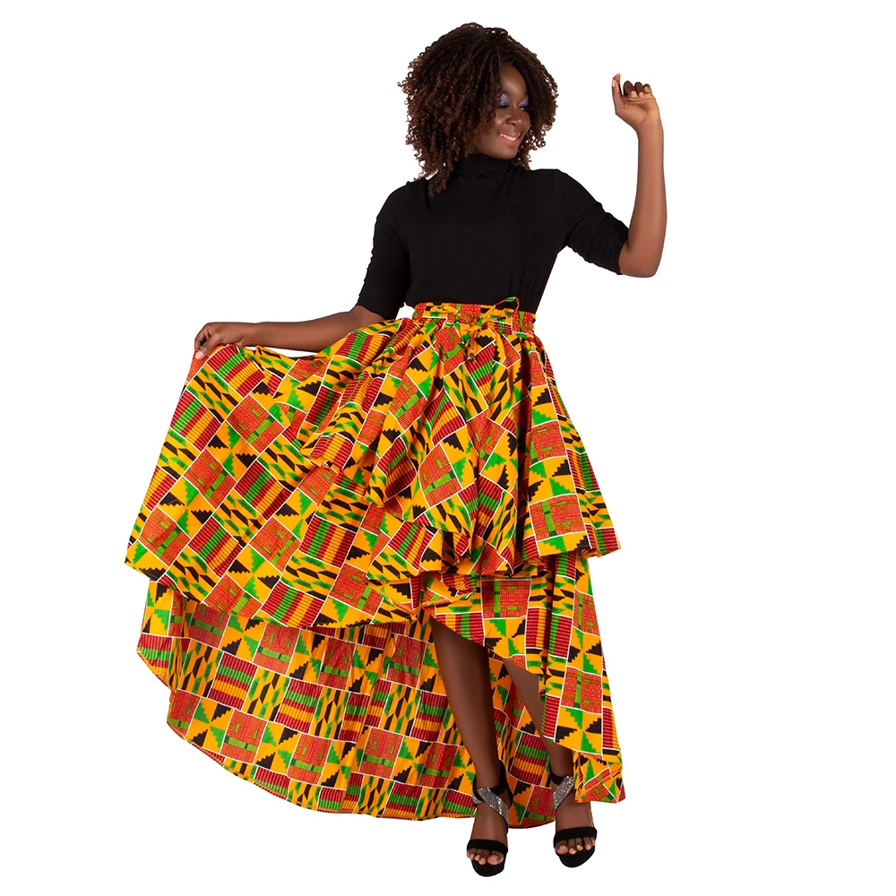 Buy African High Waist Women’s African Dashiki Wax Print Skirt Ankara Print Short Skirts Elastic Waist Lady Maxi Long Skirt KG1198.