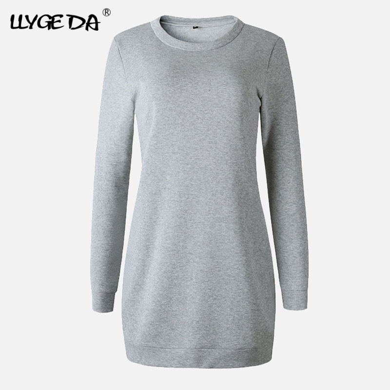 Thicken Mini Hoodies Dress Women Winter Velvet Fleece O-neck Long Sleeve Solid Basic Sweatshirts Dresses Female 2020 Autumn